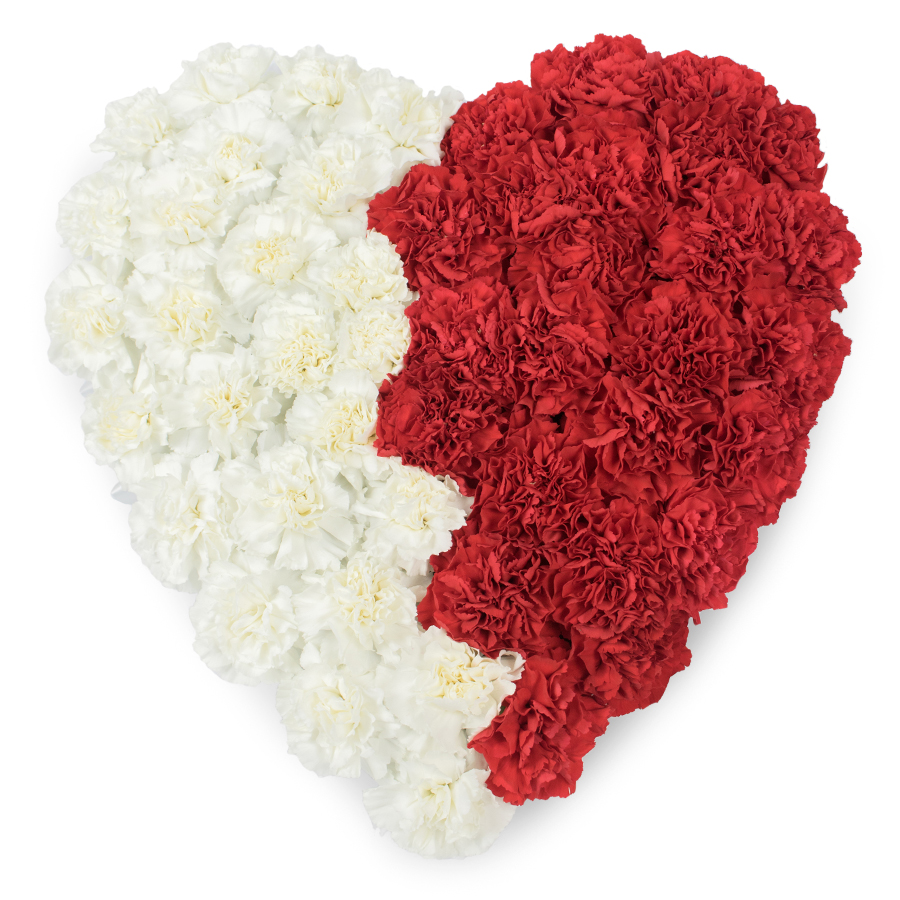 Exquisite Red and White Carnations Heart Arrangement